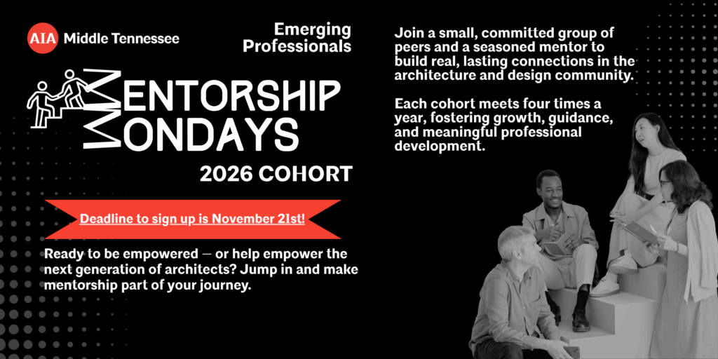 We exist to serve and support our members and advance the profession of architecture. AIA Middle Tennessee aspires to become an inclusive community of architects that advocates for the highest quality of life by shaping the built environment.